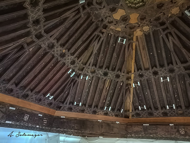 SALON RICO Corral de Don Diego de Toledo Elemento destacable de este conjunto es el Salón de Don Diego o Salón Rico, un espacio noble residencial, situado a la izquierda de la puerta de entrada. Es de forma cuadrada con cubierta trapezoidal (ochavada) y posee en su interior una armadura de limas en forma de artesa, de origen mudéjar, decorado con ricas yeserías del mismo origen. El Corral de Don Diego es una muestra del urbanismo medieval toledano de origen islámico, compuesto por una serie de edificaciones organizadas alrededor de un patio, accediéndose al conjunto por una única puerta que se cerraba al anochecer. Debe su actual nombre al hecho de que el conjunto se levantaba sobre el solar ocupado por el Palacio de los Trastámara, que fue en su día propiedad de Don Diego García de Toledo, alguacil mayor de la Toledo, señor de Mejorada y portero mayor de Enrique II de Castilla. Se conoce que el lugar hasta el S. XII y principios del S. XIII fue un corral de tipo islámico, donde e...
